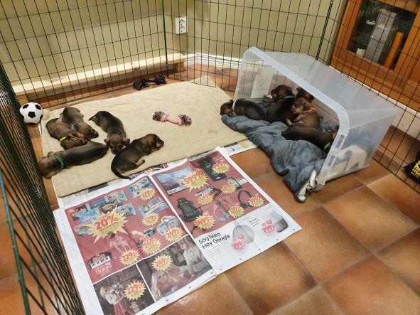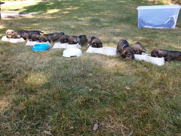 Valparna fortsätter att utvecklas väl. Alla mår toppen och Idril är allt mindre hos dom. Hon går in och diar ibland men valparnas vassa tänder gör att det gör ont så hon blir inte kvar så länge. Nu behöver vi inte bära ut valparna mellan varven för att rasta dom utan vi kan locka ut dom. Vi ska även börja introducera torrt foder till dom så att det blir lite mer tuggmotstånd.