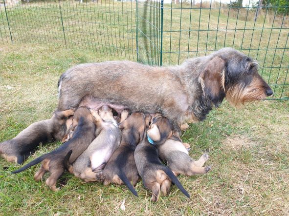 Tiden går fort och nu är det bara en vecka kvar till valparna flyttar till sina nya hem. Idril är inte så pigg på att låta dom dia längre men vi måste se till att hon inte kommer in till dom för nära inpå att hon själv har ätit för då vill spy upp mat till dom. Annars gillar hon att att mysa och busa med dom.
