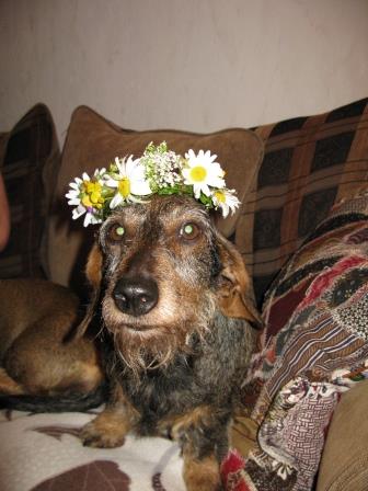 Även midsommar firades på Klevhult. Självklart så måste ju det bäras en krans av nyplockade blommor.