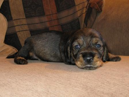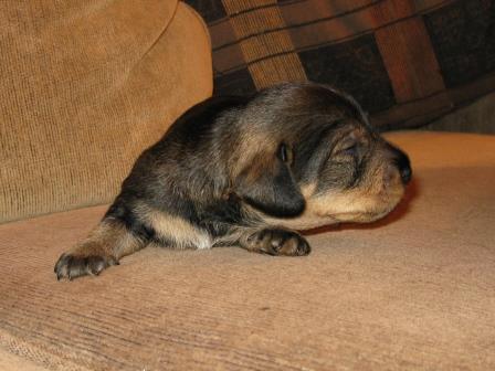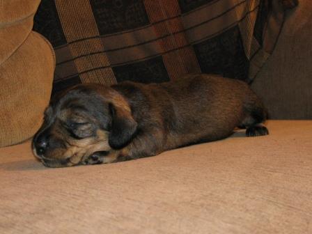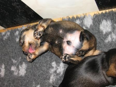 Nu är valparna drygt tre veckor gamla och det börjar bli lite fart på dom, med betoning på lite. Dom kan se och höra nu och har precis börjat gå omkring. Redan i denna tidiga ålder bråkar dom med varann och kan morra och skälla.