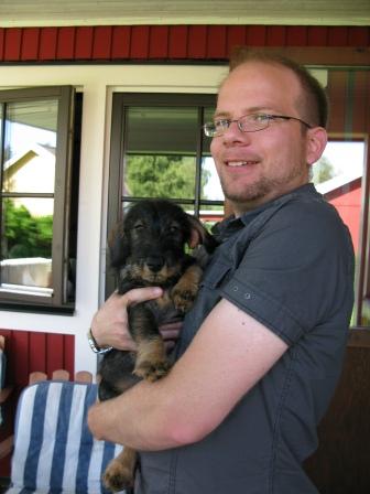 Den 22/7 fick Edvin äntligen flytta hem till sin nya husse, Stefan. Han flyttade till Växjö och har fått många nya kompisar att leka med. Han var lite skeptisk först till Stefans föräldrars hund men när han fått vänja sig lite vid sitt nya hem och husse så var det roligt.