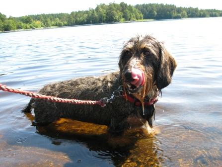 För en vecka sedan tog vi ner henne till sjön för att svalka av sig. Det uppskattade hon verkligen!
