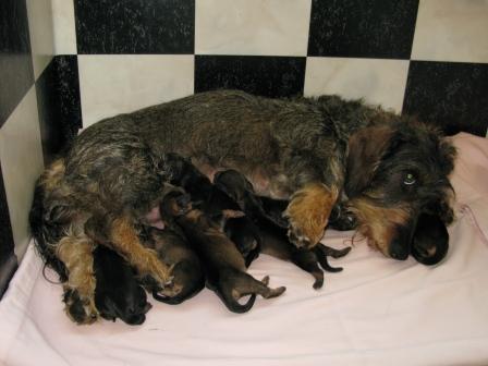 Hon hade väldigt lätt att föda dom och nu ligger hon lungt tillsammans med dom i valplådan i vårt kök och vilar. Även husse och matte skulle nog behöva en tupplur.