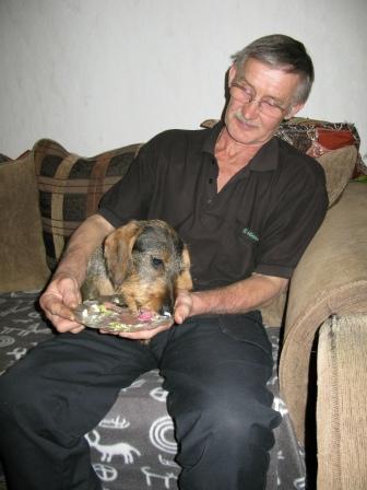 Nu har det gått ett år sedan Lovis hade sin första kull. Dom fick en tuff start med kejsarsnitt vilket resulterade i en mycket svag mamma. Men alla mår idag kanon och här på gården firade vi dagen med princesstårta. Vi tyckte att den var mycket god och det verkade Elvira och även de andra hundarna tycka. Vi har även fått veta att Svante (Nikolaus) och Lillis (Haqvin) har firats.