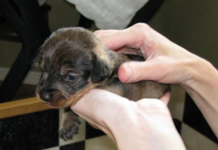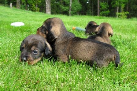 Nu är valparna drygt 4 veckor och det börjar bli fullt med spring i benen. Och med springet kommer även lekfullheten. De gillar att bita i allt och alla. Det spelar ingen roll om det är ett syskon, mormor eller husses tår. Som tur är har dom inga tänder än.