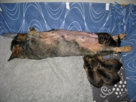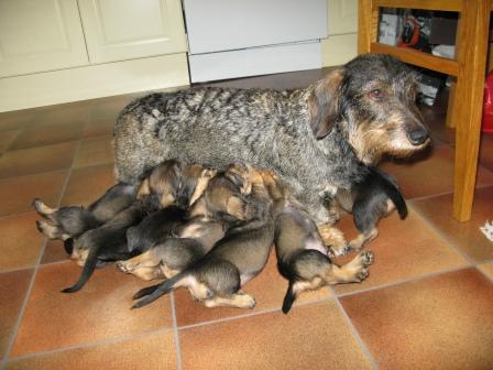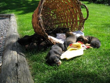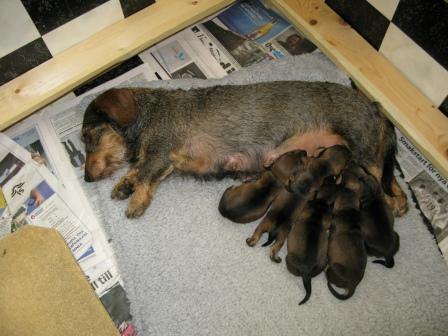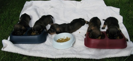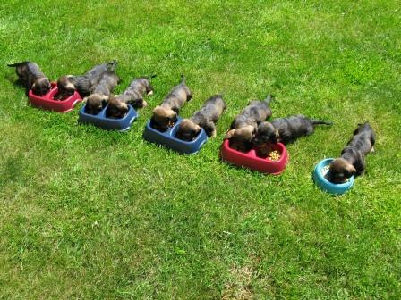 Det går åt mycket tid nu till matning och renhållning. Idag började vi pyssla med valparna 6:30 och innan vi var klara med matning i ett par omgångar, byte av tidningar i valplådan, diskning av matskålar, torkning av golvet samt utfodring och rastning av Lovis så var klockan 11. Vi hann i alla fall med en kort paus där vi kunde duscha och äta frukost.