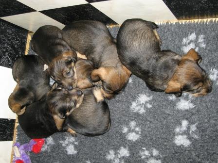 Nu är valparna 5 veckor och tänderna börjar komma. Så nu får man passa sig annars kan man få sig ett tjuvnyp i tån, eller örat som husse Roger råkade ut för när han och Tyr låg i soffan och tog en eftermiddagslur. Detta var efter dom hade legat och snarkat ikapp och han hade fått lite ny energi. Deras personligheter har börjat framträda mer och mer och vi är mitt i processen att försöka matcha rätt valp till rätt nya hem.