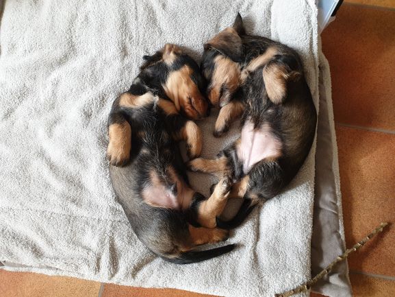 Valparna mår fortsatt bra. Tänderna växer i takt med resten av dom så nu kan det göra riktigt ont när dom gnager på ens tår eller fingrar. Men dom är otroligt charmiga allihop, förutom möjligtvis när dom står och ylar kl 03:30 och vill ut.