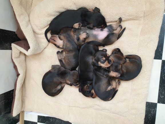 Nu är valparna en vecka och alla mår fortfarande bra. Det är lungt i valplådan vilket är ett gott tecken på att alla är mätta och nöjda. Idril ligger tillsamman med dom dygnet runt än så länge. Ibland blir hon lite sällskapssjuk och kommer och hälsar på oss men så fort någon av valparna börjar pipa springer hon snabbt tillbaka till dom. Valparna har nu fått namn. Temat är rymden. Hanarna heter Aries och Kosmos. Tikarna heter Cassiopeia, Juliet, Nova, Cressida och Ophelia.