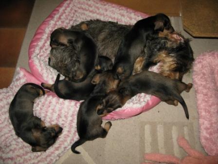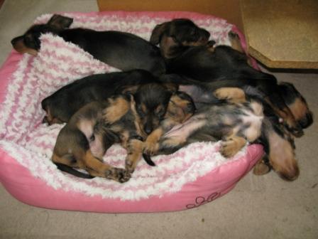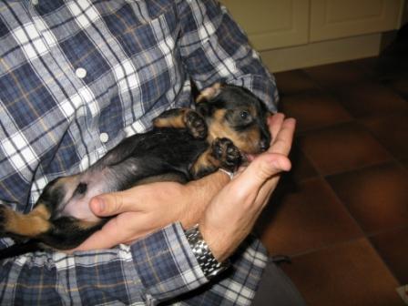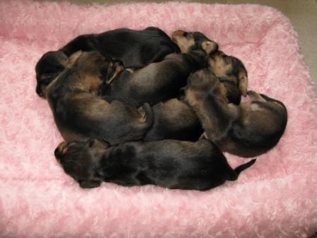 Här kommer även enskilda bilder på alla valparna när dom är 24 dagar gamla. Dom väger runt kilot nu och har därmed fyrdubblat vikten på drygt tre veckor.