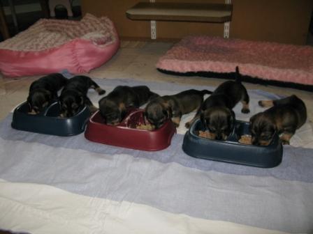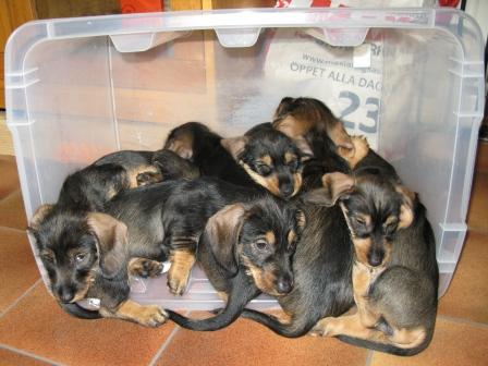Nu är valparna drygt fem veckor och det är full fart på dem mellan varven. Det har även varit fullt med besökare den sista tiden med familjer som vill ge dom nya hem. Alla valparna har nu hittat nya hem som dom kommer att flytta till med början 3/10. Det finns redan planer på en ny kull till våren på en annan av våra tikar, Lirka.
