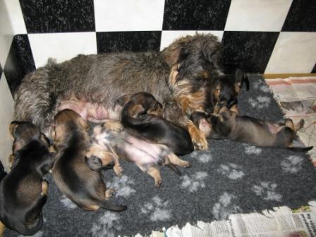 Vår charmiga Lirka parades med Klavreskogens Figge för snart sex veckor sedan. Vi väntar valpar runt den 24/5 vilket vi ser fram emot då det var ett år sedan sist.