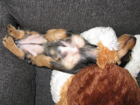 Valparna brukar väcka oss mellan kl04 och 05 för att dom är hungriga så dom blir dom utfodrade och sedan leker vi med dom i en timme. De är nu vakna i upp till 1-2 timmar och leker med oss och varandra. Sedan är dom väldigt trötta och behöver vila ikapp sig.