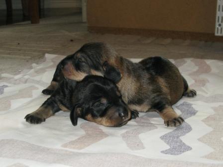 Dom sex valparna som är kvar mår alla prima och växer så det knakar. Dom har precis börjat gå och alla håller på att öppna ögonen. Vi har även döpt alla valparna. Till denna kull så har vi som tema grekiska gudar och gudinnor. Pojkarna heter Helios och Eros ( solens och kärlekens gudar). Tikarna heter Nyx (nattens gudinna), Eos (gryningens gudinna), Enyo (krigsgudinna), och Iris (regnbågens gudinna).