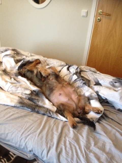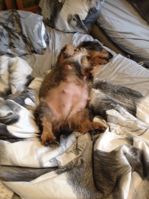 Nu är Elvira 7 veckor dräktig och har fått en rejäl mage. Hon behöver ibland gå ut flera gånger under natten så det börjar bli lite påfrestande för husse och matte. Det dröjer bara två veckor tills valparna kommer och vi ser fram emot! Vi hoppas innerligt att vi får minst en tik i denna kullen så att vi kan behålla en.