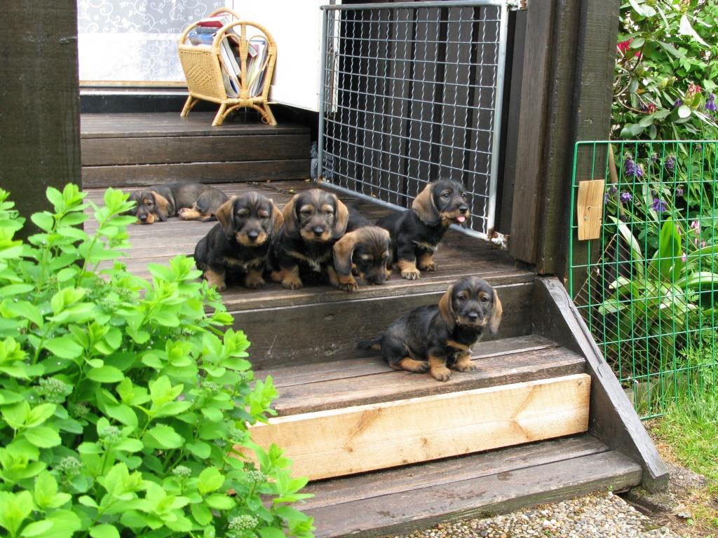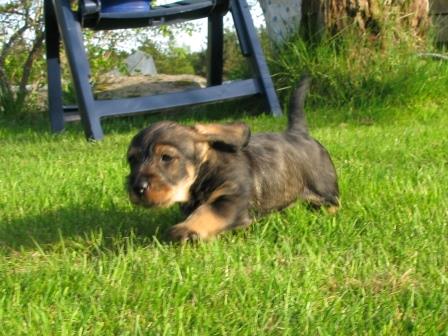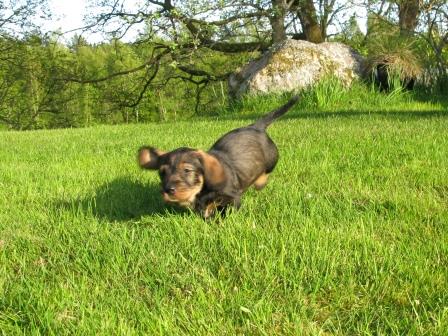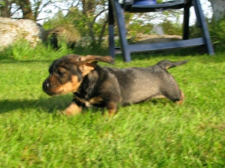 Nu är valparna 42 dagar och gillar att utforsdka världen runt dom. Det gäller att var snabb på fötterna när man släpper ut dom för dom kan springa åt olika håll allihop för se vad som finns att hitta. Som tur är funkar det rätt bra kalla på dom.