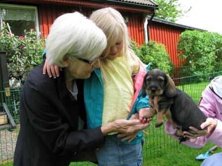 Frej är en glad och social valp som gillar att busa med sina bröder, mamma, mormor och gammelmormor med. Han är nyfiken på sin omgivning och hade han bara varit tik så hade vi gärna behållt honom själva. De tre sista korten är på Frej.