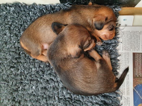 Nu är valparna drygt två veckor gamla och dom växer i en rasande takt. Dom har alla öppnat ögonen och börjat höra. Från att i början bara krälat omkring så stapplar dom nu fram på ostadiga ben. Det händer att någon skäller till ibland eller viftar på svansen. Det är riktiga små charmtroll. Idril sköter sig exemplariskt så det har varit en lugn period för oss men ge det en vecka till så blir det desto mer för oss att göra. Vi har valt namn för kullen och temat denna gång blir Disney filmerna "Den lilla Sjöjungfrun" och "Lejonkungen". Hanarna heter Mufasa, Simba, Triton, Grimsby och Zazu. Tikarna heter Ariel, Shenzi, Kiara, Sarafina och Nala.